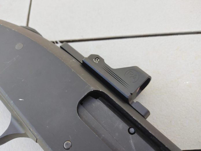 The Classic Mini might be designed with handguns in mind, but I went a different route. To see what it can take, I mounted it on my dolled-up Mossberg Shockwave. The Shockwave is aptly named, and with the right ammo, it can throw quite a bit of recoil at the optic. When I got to the range, I realized I was glad I picked a shotgun because zeroing wouldn’t be the easiest aspect of the Classic Mini.Â