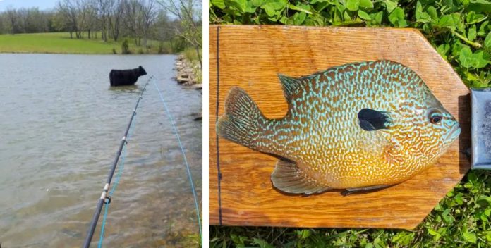 Goad estimated he was only catching one fish for every 10 tosses of his throwline. He had fished this lake for a decade and usually had good luck with crappie, bluegill, and bass, but this day was different. That is, until a yearling heifer came strolling down to the water.