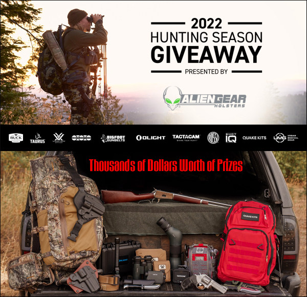 Alien Gear Holsters, American manufacturer of holsters and firearms accessories, has pulled together some of the top brands in the industry to create an impressive hunting season giveaway for 2022. There’s a massive collection of cool products for the 2022 Hunting Season Prize Package. Shawn Hostetter, CEO of Alien Gear Holsters, states: “All together this prize package is worth several thousand dollars and would make an incredible start to hunting season, or a fantastic gift for the hunter in the family.”