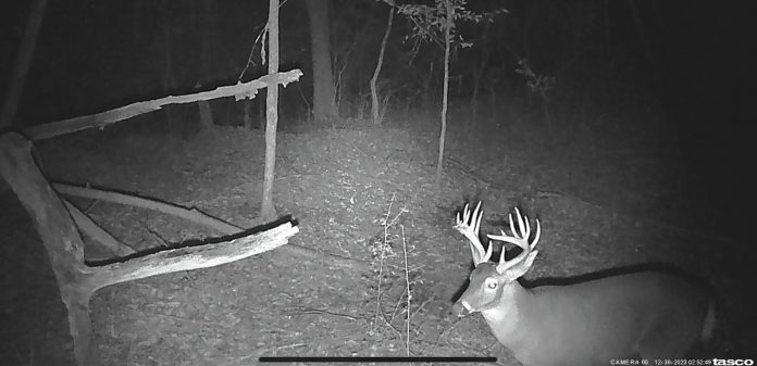 This trail cam photo was taken a little over two weeks before Fortenberry finally tagged the buck. Photograph courtesy Johnathan Fortenberry