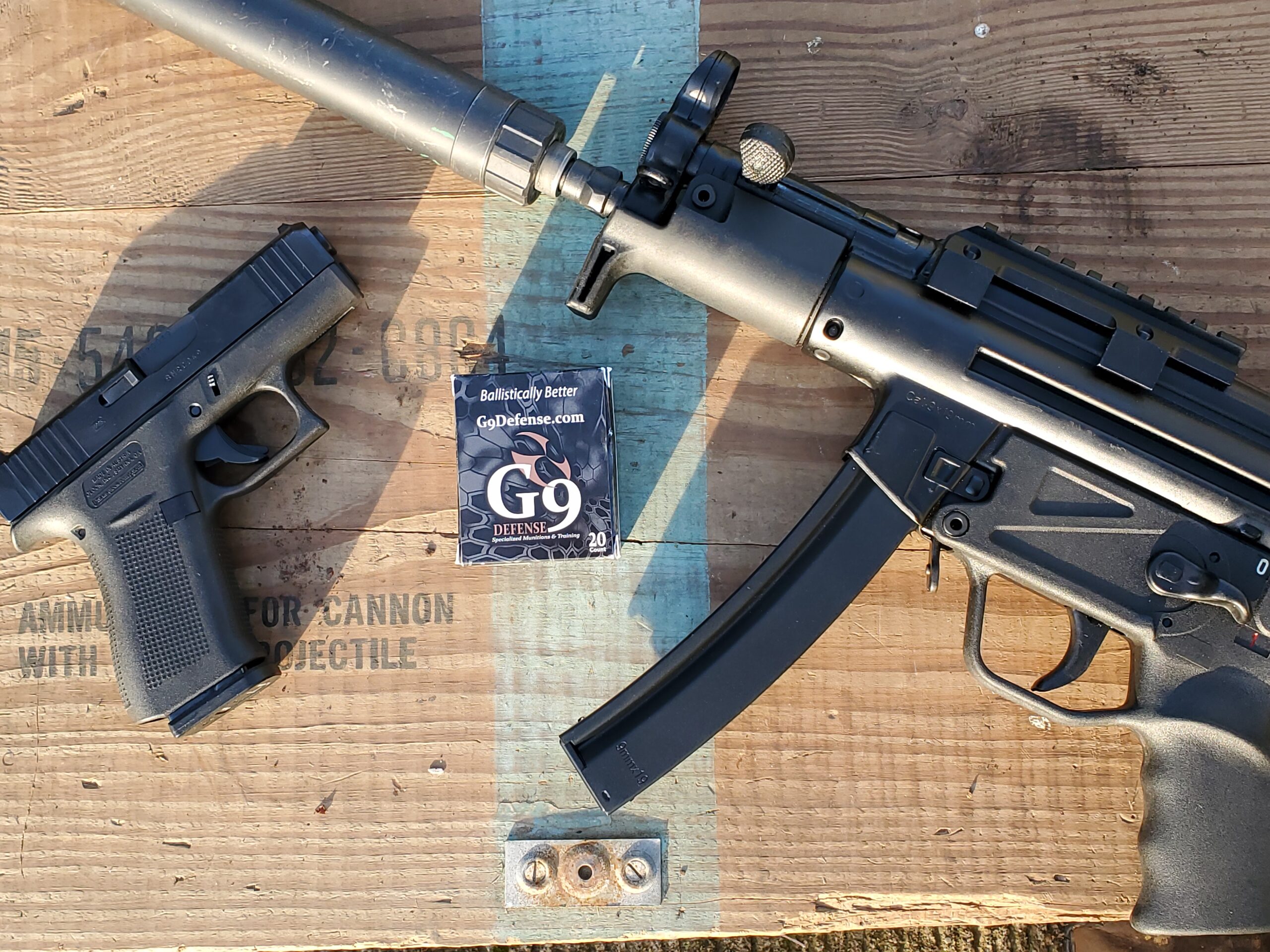G9 was interested in having some testing done on four of their Defense’s 9mm loads, the 124-gr. +P Woodsman, the 80-gr. External Hollow Point (EHP), the 80-gr. External HP +P, and the 126-gr. Subsonic round. This represents all of their 9mm offerings, minus the 115-gr. FMJ round. I’m testing them with both a Glock 43X and a Zenith ZF-5P (Mp5K clone). Velocities were recorded with a Caldwell chronograph, and some terminal ballistics data were captured with Clear Ballistics calibrated gelatin.