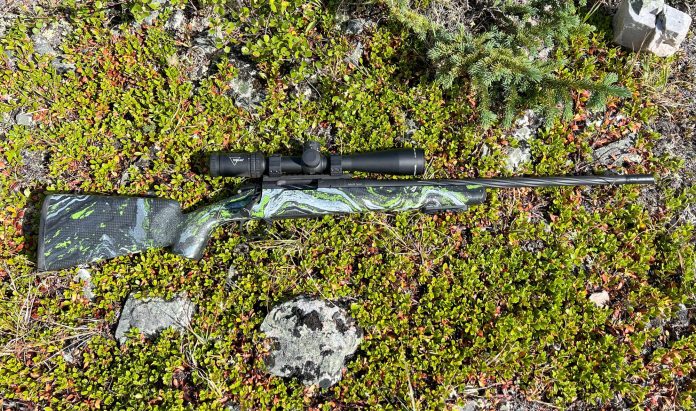 The rifle weighs 6 pounds 13 ounces, not exactly an ultralight rig, but certainly portable, especially if you don’t mount an overly heavy scope on its Picatinny rail. Their lightest rifle, the Mountain Shadow Carbon, is similar to mine but has a carbon-fiber barrel that shaves about half a pound off the base weight. At the upper end of the weight scale is the Arid 1760, a stouter precision rifle that weighs about 9 pounds empty and unscoped.