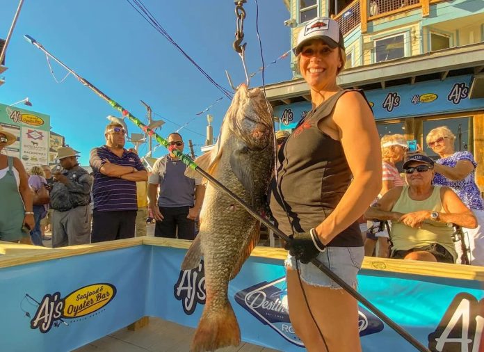 A potential new world-record black drum was speared by a Florida freediver on Oct. 1, during the first day of the Destin Fishing Rodeo. While spearfishing can be a challenging, lung-busting sport for even the fittest freedivers, 40-year-old Julie Augustine managed to spear the big drum while eight months pregnant, reports The Destin Log.