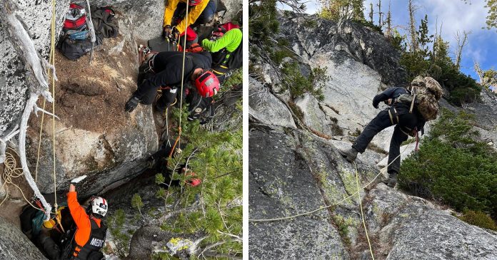 Delahunty’s hiking buddy was able to call 911 by 9:30 a.m. (fortunate, given their remote location at 7,000 feet) and make contact with a search and rescue coordinator, according to a press release issued by the Chelan County Sheriff’s Office. But as the friend described the location where Delahunty was trapped, it became clear that not only would it take hours for a rescue crew to hike that deep into the backcountry, but that crews were going to have to use ropes to rappel down to his location.