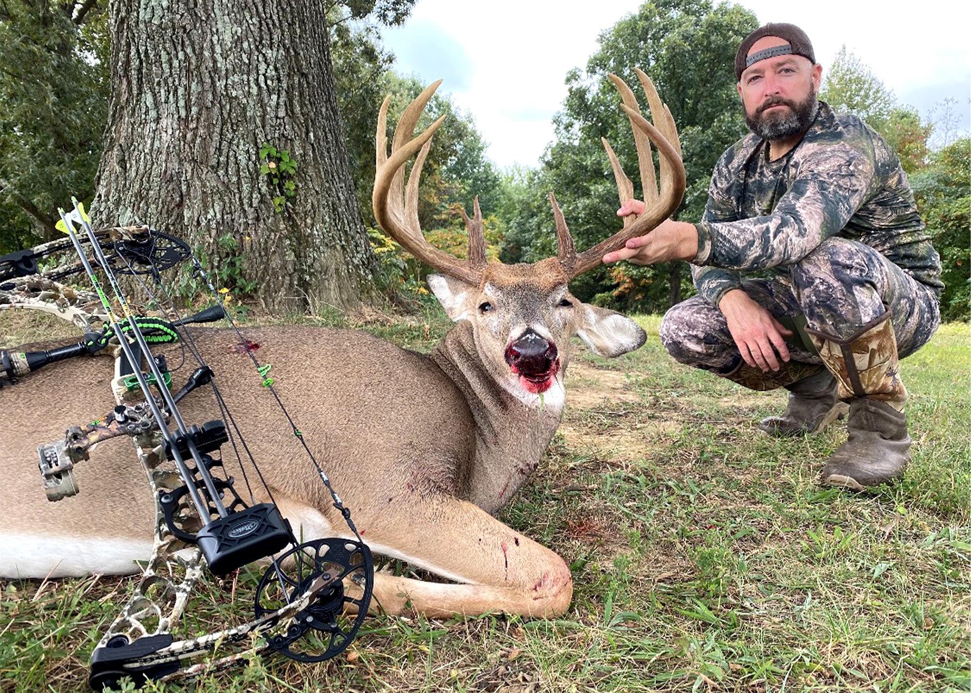 Jared Kenner says it only took him 18 years of bowhunting to finally kill a giant. The buck he harvested from his property in Kentucky in late September is hands down his biggest deer yet, and Kenner earned every inch of the buck’s 184-inch rack. After watching the buck grow over the past four years, Kenner hunted hard in the early season but never got the right opportunity. It would take a couple more nightmare sits and some help from his wife for him to finally seal the deal.