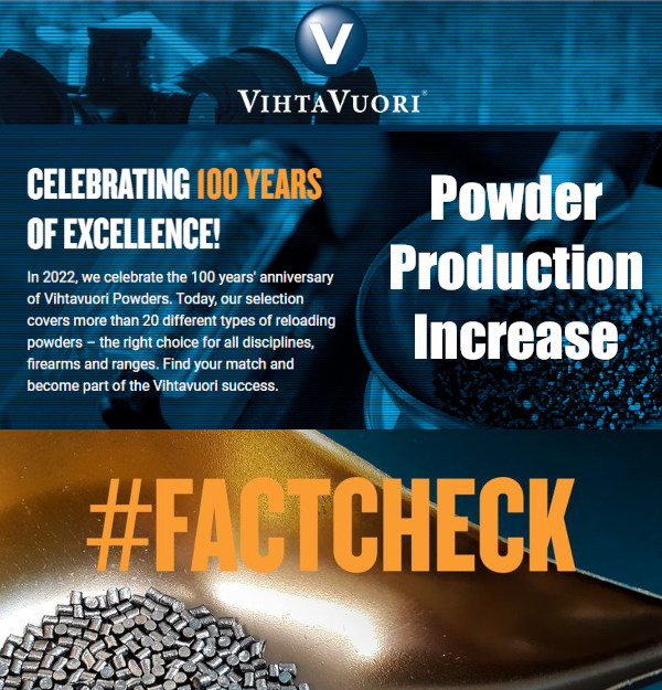 Vihtavuori Increases Powder Production PLUS New Load Data