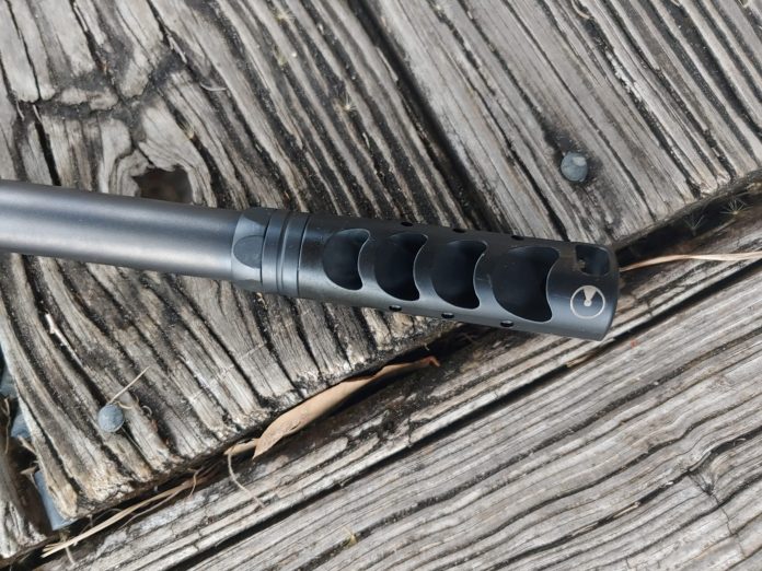 While there was no noticeable muzzle flash, there was a significant increase in noise. It does what brake does and make the thing a good bit louder. There is no effect on accuracy at all, and as a bolt gun, it didn’t exactly affect reliability either.