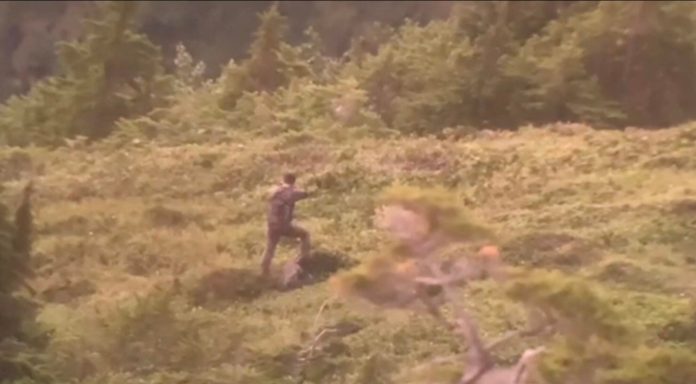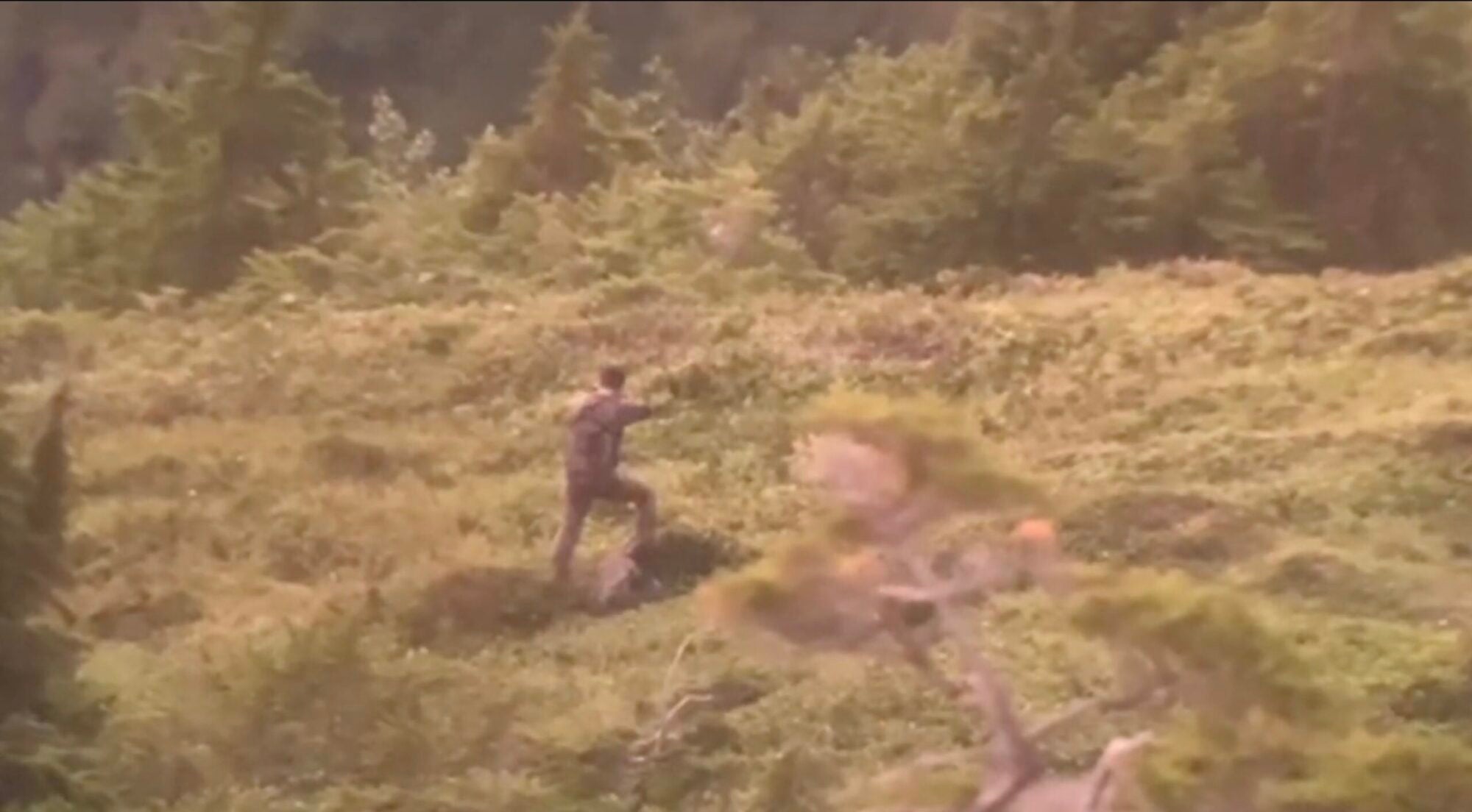 Jatrinski nervously pulled off his ballcap and rubbed his head multiple times as he stumbled in the direction of his shot. He gripped his rifle by the barrel and used it like a hiking stick. It’s clear in the video that he didn’t see the goats anywhere. He looked over his shoulder as if he could tell someone was watching him. His body language read equal parts confusion and regret.