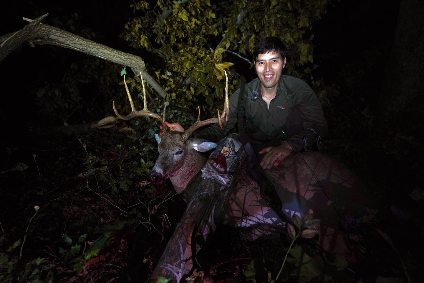 The light was fading, and I just needed him to make a mistake. Finally he fed my way and then turned to head back the way he had come, offering a 20-yard shot. I ran my shot process and saw the fletching sticking out behind his shoulder as he ran, then heard him crash.Â