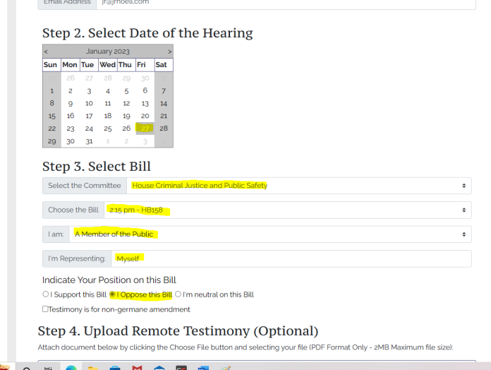 Here’s a screenshot of how to fill out the online form to submit testimony: