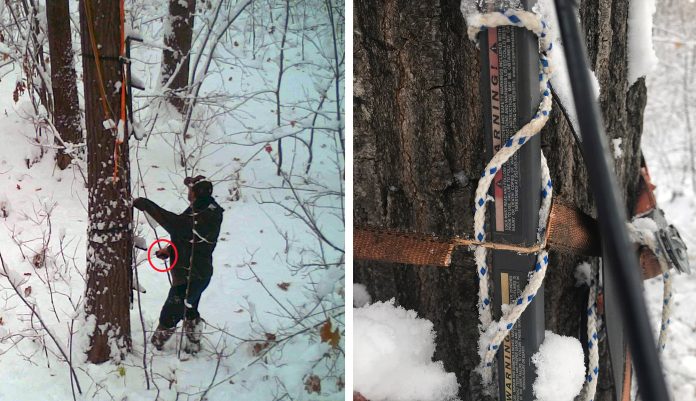 Weeks went by. Eventually, the hunter returned to his stand, pulled the memory card from his camera, and started climbing the stand. The stand looked normal and the climbing sticks were sturdy. But as soon as the hunter climbed onto the platform, it collapsed underneath him. He fell 20 feet to the ground, where he injured his back and ankle after landing on his feet.