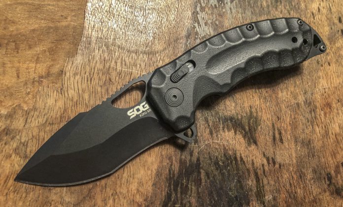 Despite myself, I really love this knife. The SOG Kiku XR flipper is a beefy, solid, substantial folding knife that’s beautifully sculpted to fill the hand.